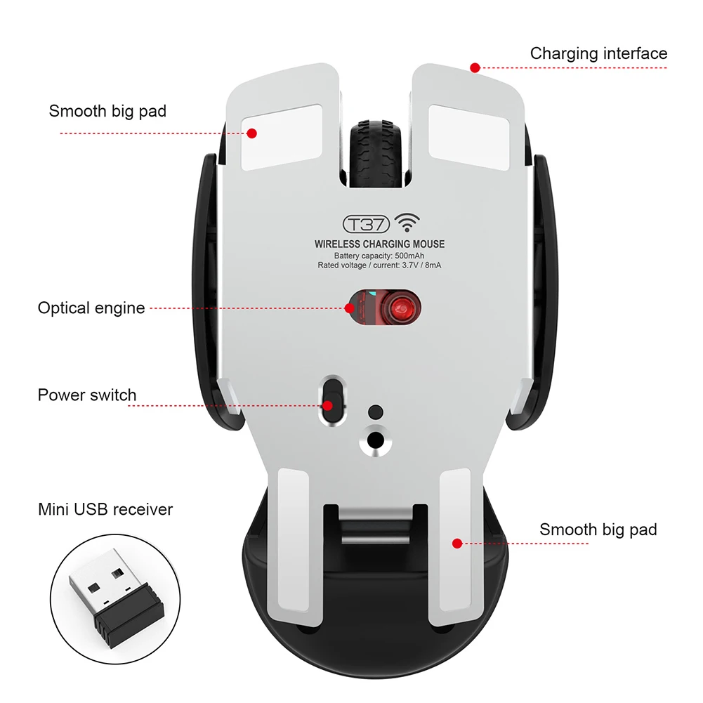 Best Seller T37 2.4G Optical Notebook Home Laptop Wireless Mouse Computer Gaming Office USB Charging Silent Des