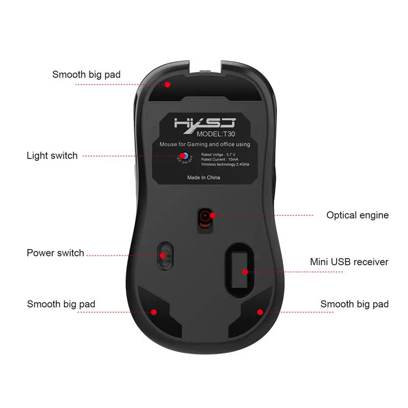 HXSJ T30 Wireless Gaming Mouse 3600 DPI Rechargeable 7 Color Back-light Breathing Comfort Gamer Mic