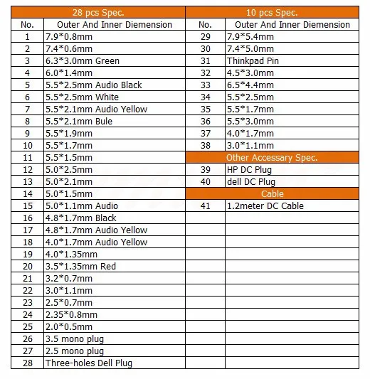40pcs Universal DC Jack Plug For HP DELL Notebook/Laptop AC Power Charging Adapter Computer Tip Con